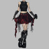 Saia Assimétrica Punk Rock com Xadrez Bordô L