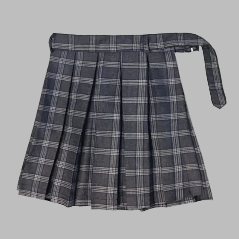 Saia Cinza Plissada com Padrão Xadrez Rock e Laço