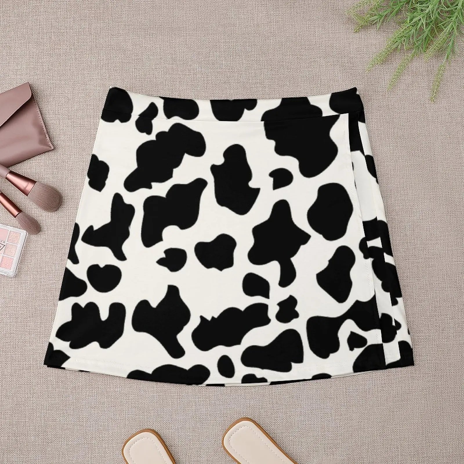 Saia Curta Retro Grunge Estampado de Manchas de Vaca