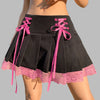 Saia Grunge Gótica com Laços Cor-de-rosa e Renda L