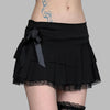 Saia Gótica Preta em Camadas com Renda e Fita L