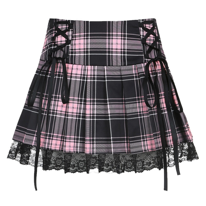 Saia Grunge em Xadrez Preto e Branco Roxo