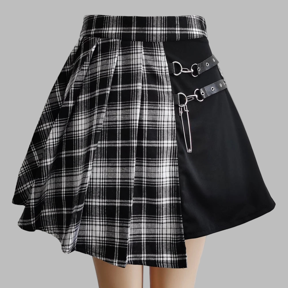 Saia Grunge Punk Rock Preta e Branca com Cintos e Tachas