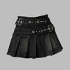 Saia Plissada Preta Punk com Tiras Metálicas e Tachas