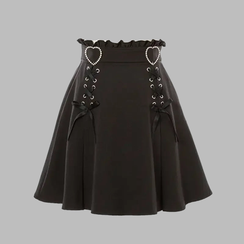 Saia Punk Preta com Laço Duplo e Corações Ver opcoes