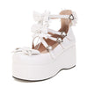 Sapatos Brancos Jirai Kei com Laços em Plataforma