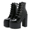 Sapatos Góticos Femininos Plataforma Pretos Verniz Metal