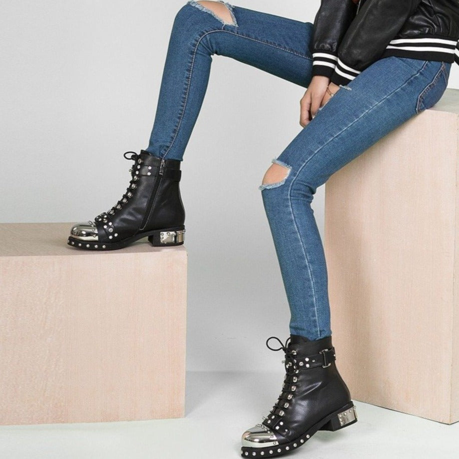 - Decorações: tachas de ferro decorativas, calcanhar e frente do sapato reforçados com metal