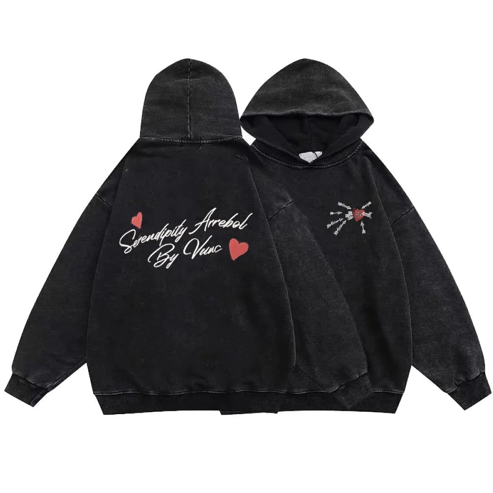 Camisola com capuz preta alternativa Grunge - Heart