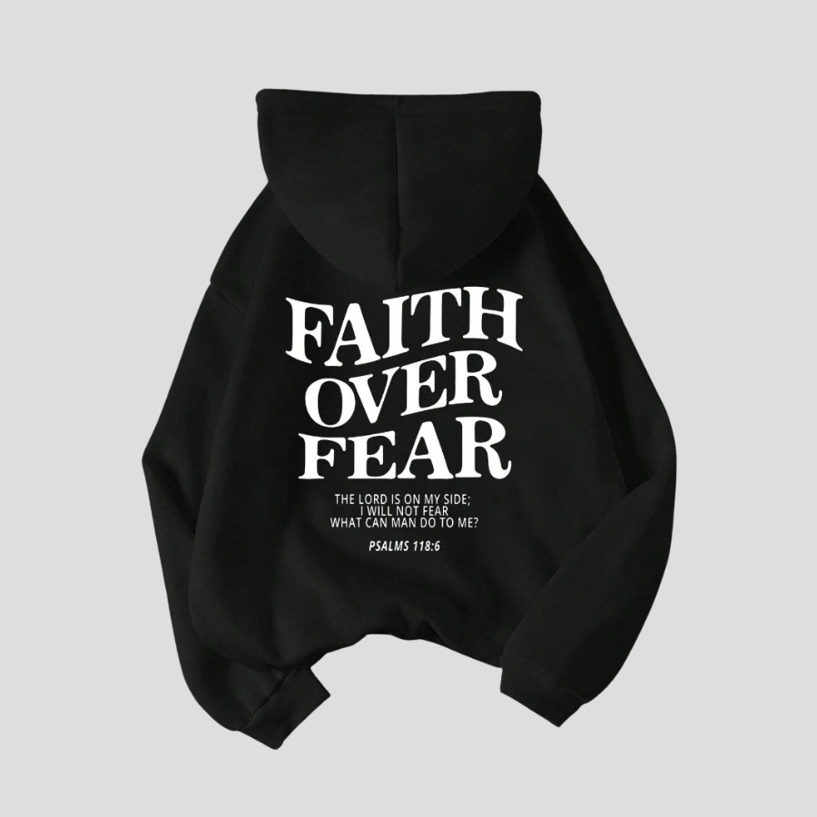 Sweatshirt Preta Faith Over Fear com Inscrição Rock XXL