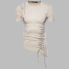 T-shirt Assimétrico Bege com Cordões Estilo Punk XXL