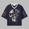T-shirt Desportivo Azul Marinho com Caveira em Rede Metal XXL