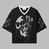 T-shirt Desportivo Preto com Caveira em Rede Metal