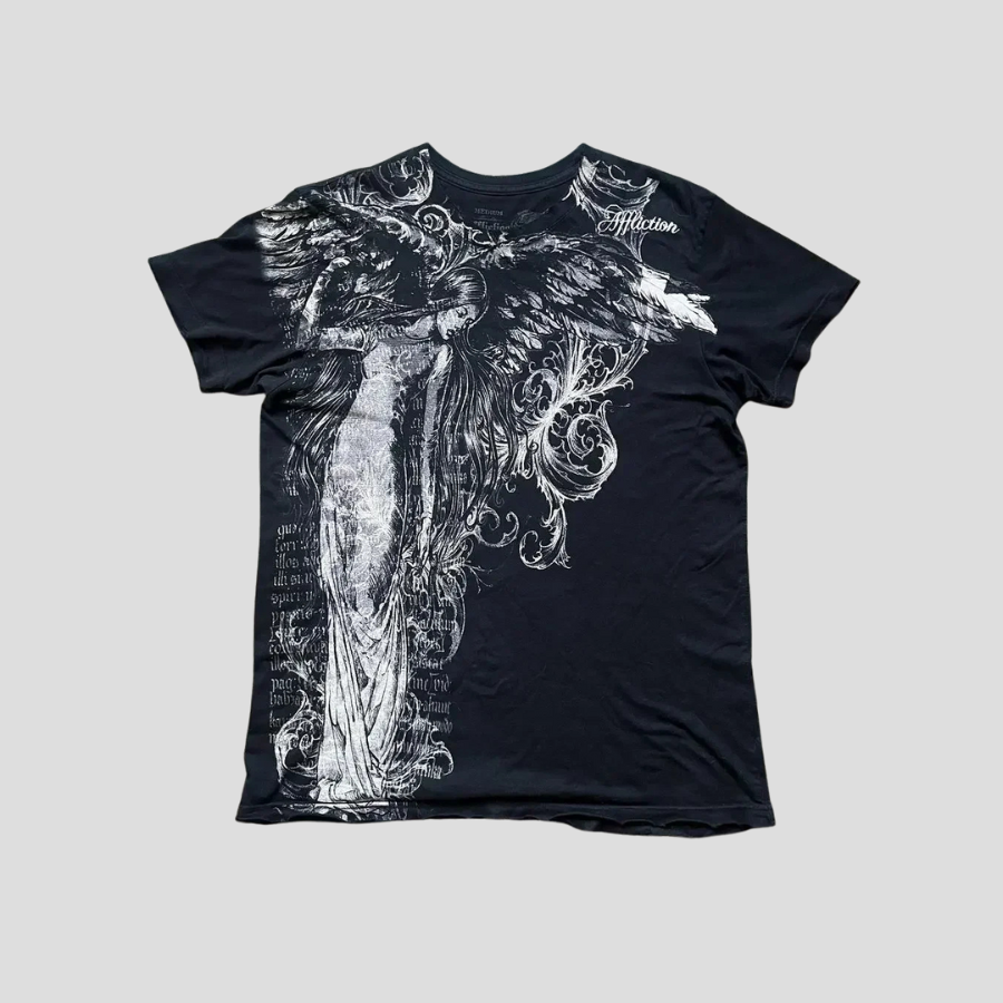 T-shirt Gótico com Figura Angelical e Asas Affliction