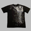 T-shirt Metal Rock com Padrão Tribal e Asas Ornamento Gótico
