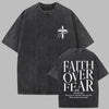 T-shirt Oversize Grunge Rock com Cruz e Inscrição "Faith Over Fear" 3XL