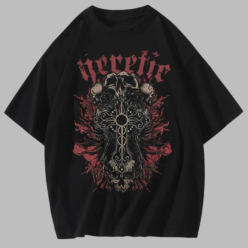 T-shirt Preto com Cruz e Caveiras Metal Ver opcoes
