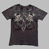 T-shirt Punk Metal com Caveiras e Cruz Cinzento