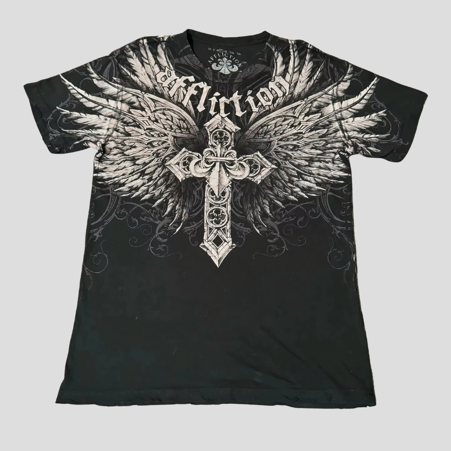 T-shirt Punk Rock com Asas e Cruz Grunge