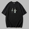 T-shirt Rock Preto com Gestos de Mãos Oversize