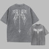T-Shirt Vintage Cinzento com Asas de Anjo Grunge Metal