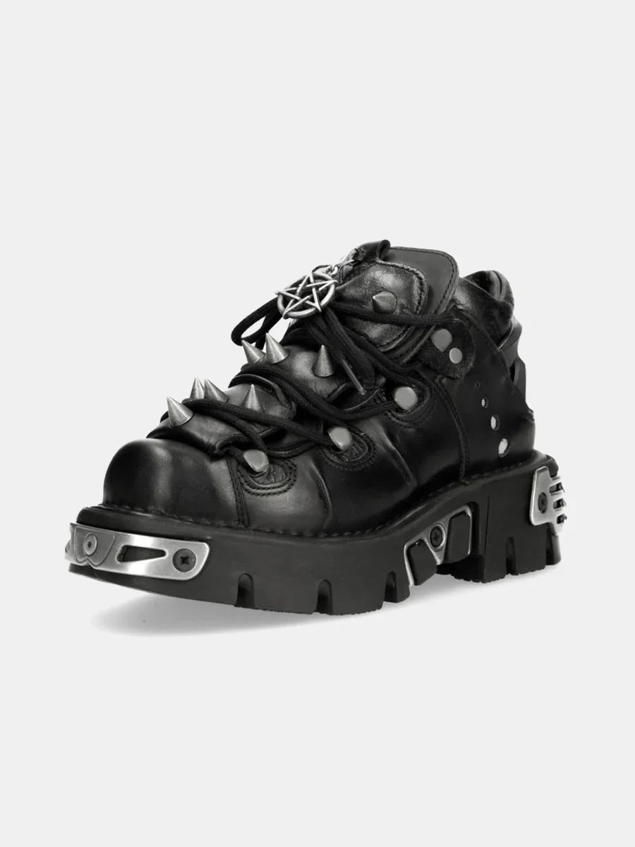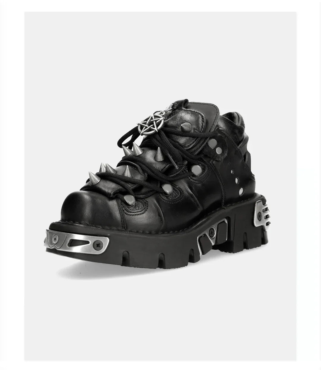 - Estilo: sapatos baixos com atacadores, inspirados no estilo punk