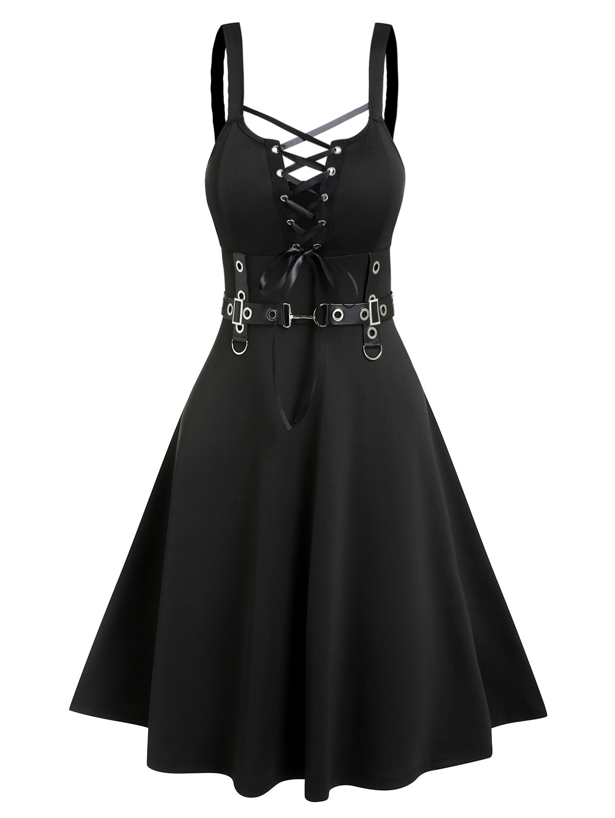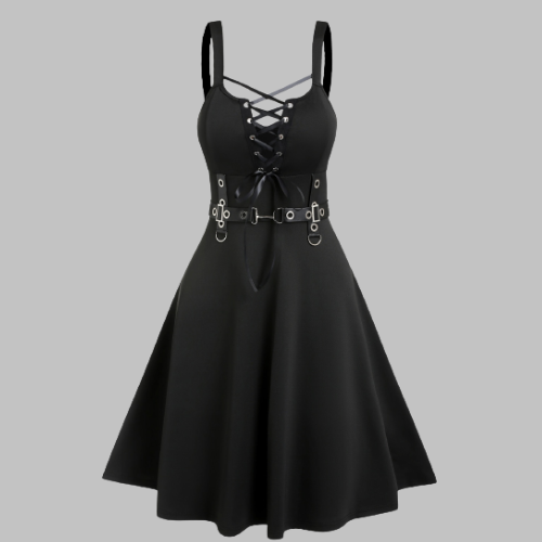• Estilo Moda e Punk: Apresentando um estilo tanto de moda como punk, este vestido é perfeito para espíritos livres e ousados que gostam de se destacar.