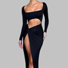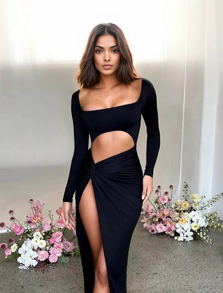 • Detalhes Casuais e Sensuais: As mangas compridas e o decote quadrado adicionam um toque de sedução e charme a este vestido, criando um equilíbrio harmonioso entre sedução e elegância.