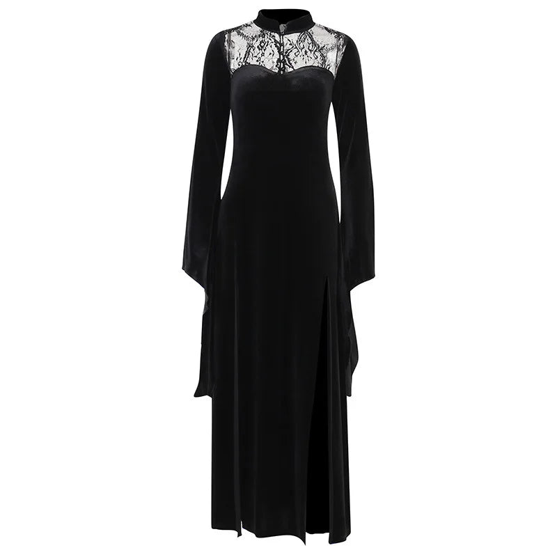 Vestido gótico longo preto com renda e fenda alta Ver opcoes