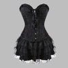 Vestido Gótico Preto com Corpete Steampunk, Renda e Folhos
