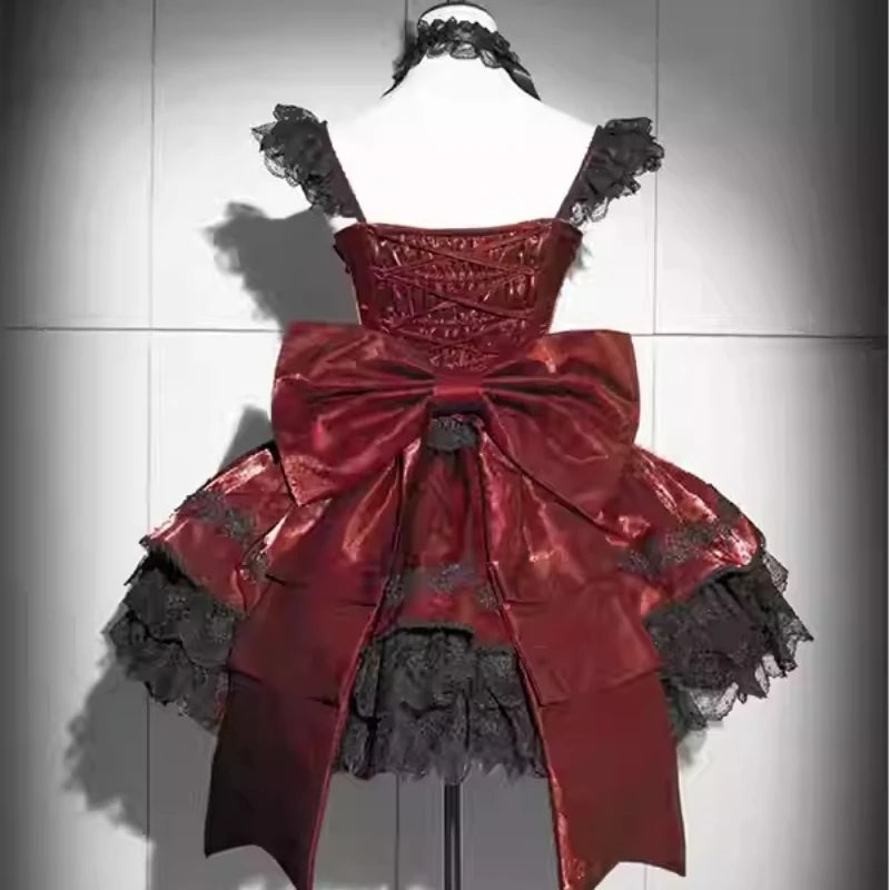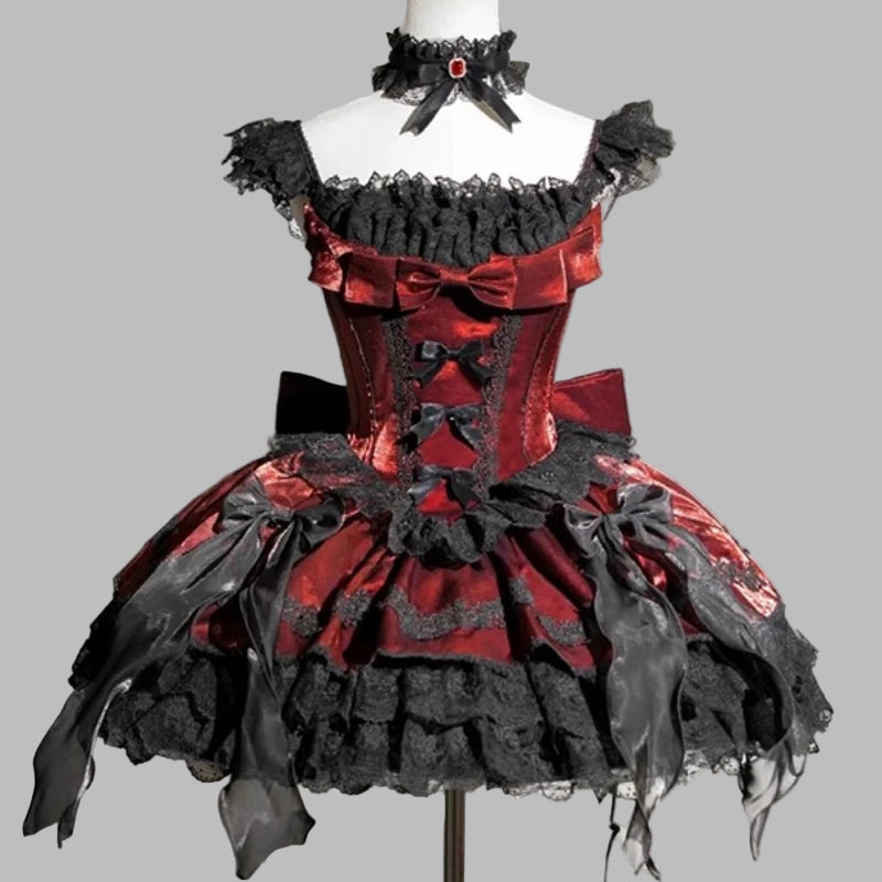 Vestido Lolita Punk Gótico Vermelho Preto Renda
