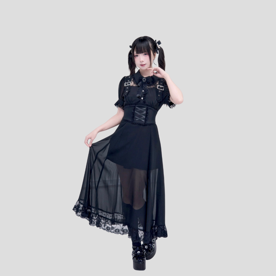 Jirai Kei Sukienka z Gorsetem Czarna Kawaii Długa