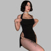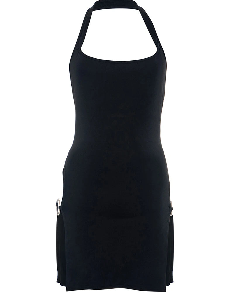 Vestido Mini Preto Punk Rock com Halter e Fivelas