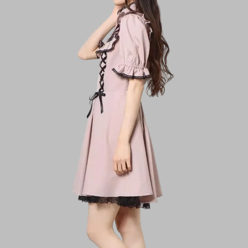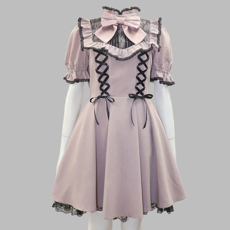 Vestido Punk Rock com Duplo Cordão e Laços Lilás