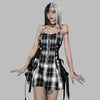 Vestido Punk Rock de Alças com Laço em Xadrez