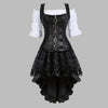 Vestido Punk Rock Preto com Corpete de Couro e Saia Assimétrica de Renda 4XL