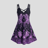 Vestido Punk Rock Roxo com Caveiras e Ornamentos Góticos 5XL