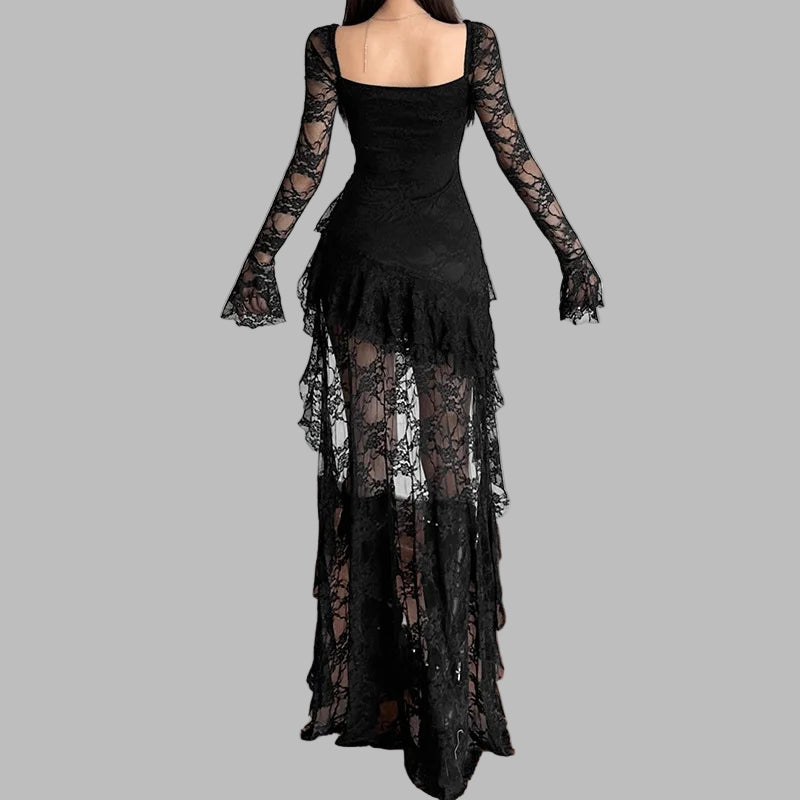 Vestido Preto Rock com Renda e Saia Assimétrica