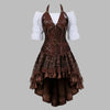 Vestido Steampunk Castanho com Corpete e Cintas de Couro 4XL