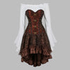 Vestido Steampunk Castanho com Corpete e Mangas Brancas 6XL