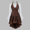 Vestido Steampunk Castanho com Corpete e Mangas Brancas 6XL