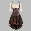 Vestido Steampunk com Corpete às Riscas e Saia de Renda Castanho 6XL